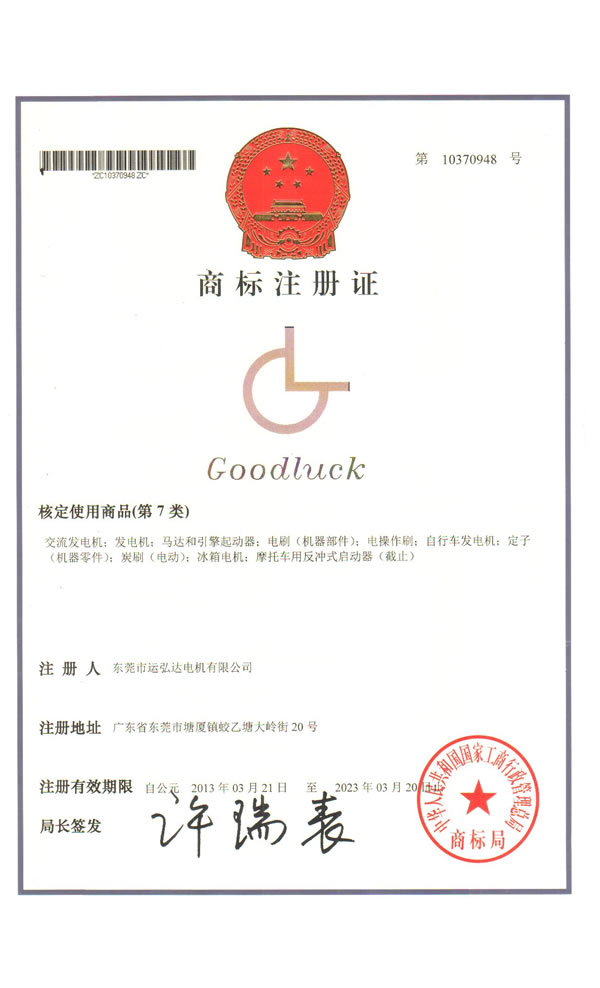 運(yùn)弘達(dá)商標(biāo)注冊證